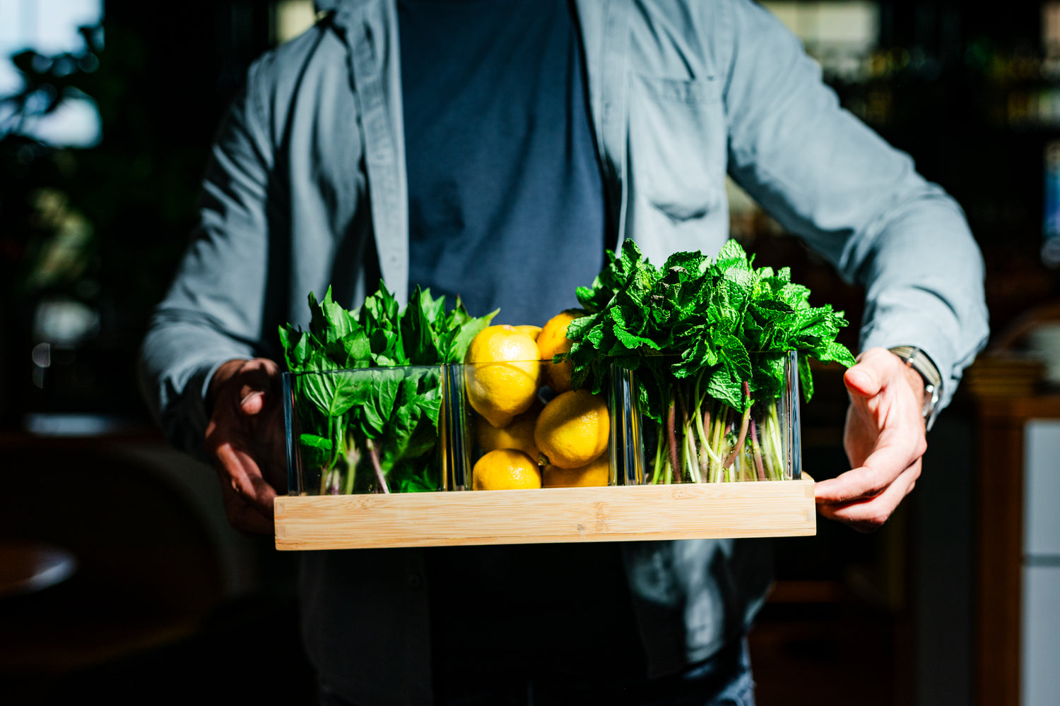 Botanical 4.75" Cube (3 Piece Set) w/ Bamboo Tray 15"